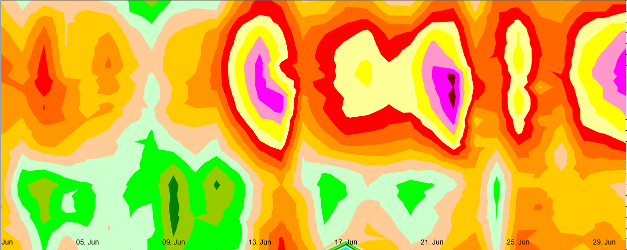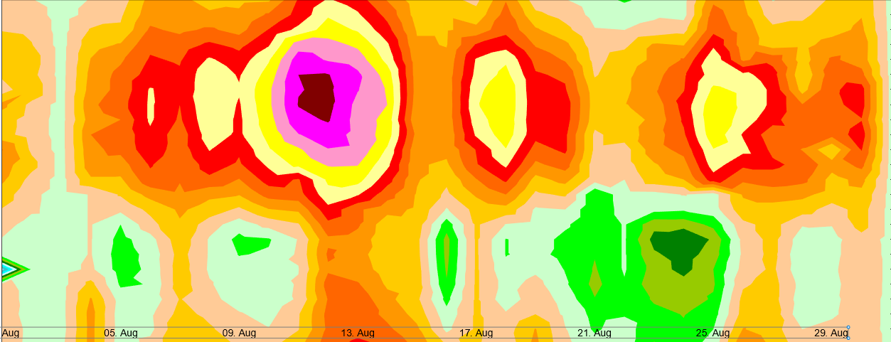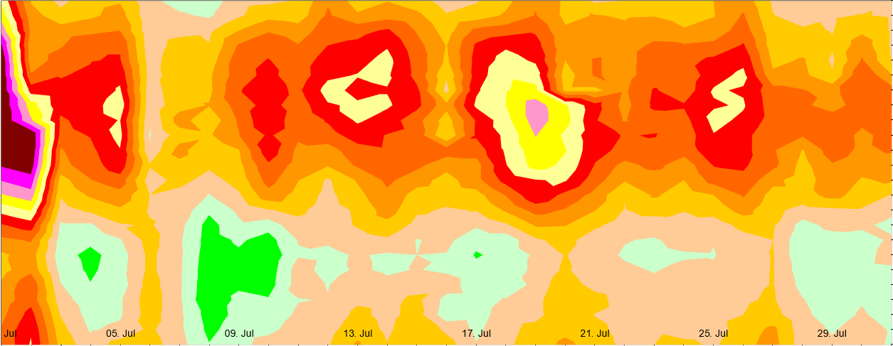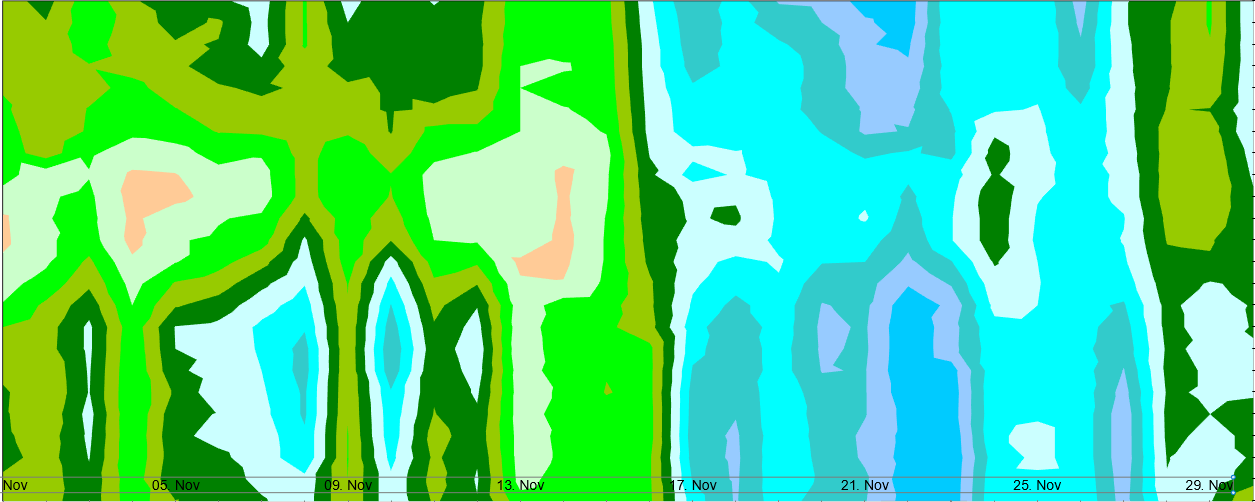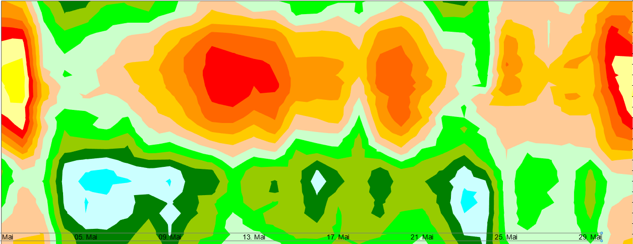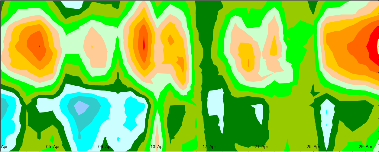 Isoplethendiagramm (Linien gleichen Zahlenwertes einer Gre) dienen dazu, um z. B. bei einem Thermoisoplethendiagramm die Tages- sowie die Jahresschwankungen der Lufttemperatur in einem Diagramm festzuhalten. So knnen Klte- und Wrmeperioden schneller gedeutet werden. Durch die farbliche Abgrenzung der Isoplethen sind jahreszeitlich bedingte Vernderungen sichtbar. Wie werden die Diagramme erstellt bzw. was ist die Grundlage dieser. Es werden die Temperaturwerte zu jeder vollen Stunde eine Tages gesammelt und dies den ganzen Monat. Daraus wird dann diese Diagramm erstellt