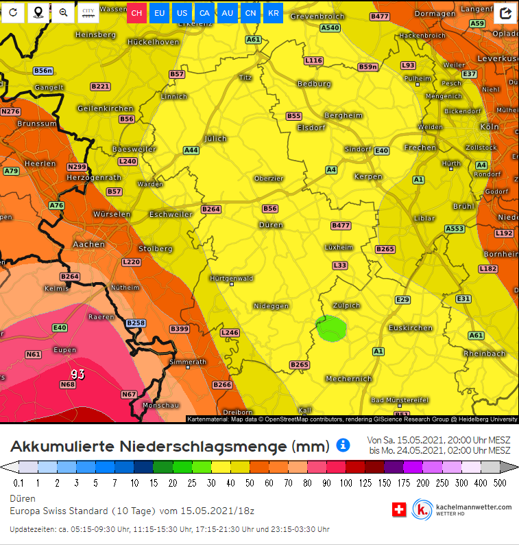 14.05.2021: Mögliche Niederschlagmengen bis zum vom 17.05.2021